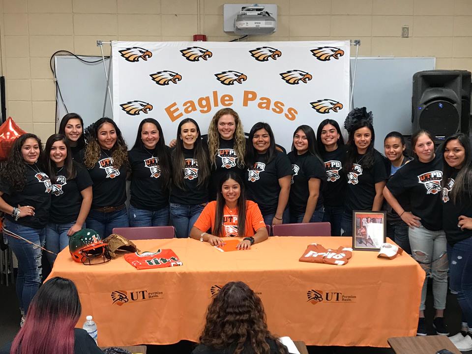 Eagle Pass Sports Central is pleased to announce that Eagle Pass Lady Eagles’ senior standout centerfielder Leslie Martinez has signed her letter of intent to continue her athletic and academic career with the University of the Texas of the Permian Basin Falcons softball program under the tutelage of head coach Tiala Tagoloa and assistant coach Jessica Delgado. The UT-Permian Basin Falcons located in Odessa, Texas are an NCAA Division II softball program and members of the Lonestar Conference who is comprised by the likes of Angelo State University, Cameron University, Eastern New Mexico, Midwestern State, Tarleton State, Texas A&M-Commerce, Texas Women’s University, West Texas A&M, Western New Mexico as well as the University of Texas of the Permian Basin.